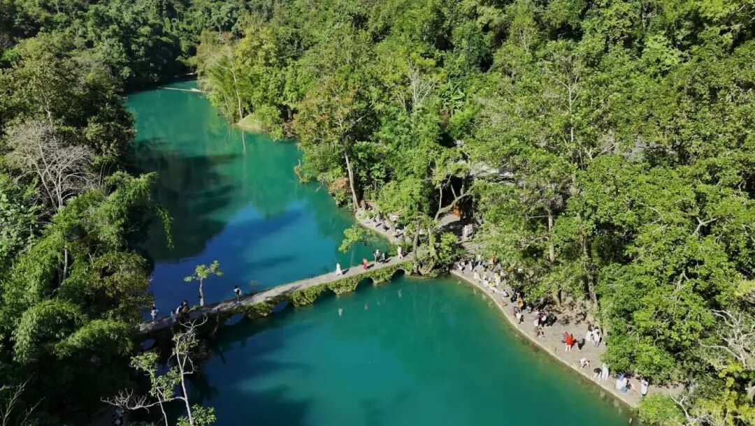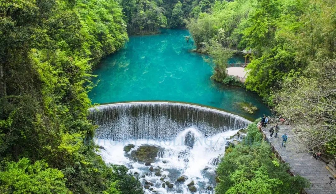 墨绿色潭水宛如一块通透的绿翡翠