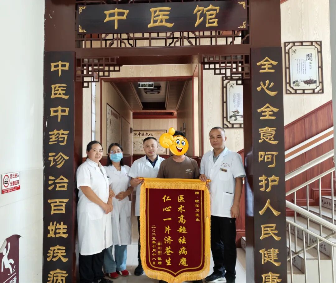 近日,荔波县中医医院茂兰镇中心分院中医科欧任力收到一面来自高速公路工作者黎先生的致谢锦旗,锦旗上印着“医术高超祛病魔,仁心一片济苍生”的金色大字,不仅是患者对欧任力医生及医护团队的高度认可,更生动诠释了医院“以患者为中心”的服务理念。