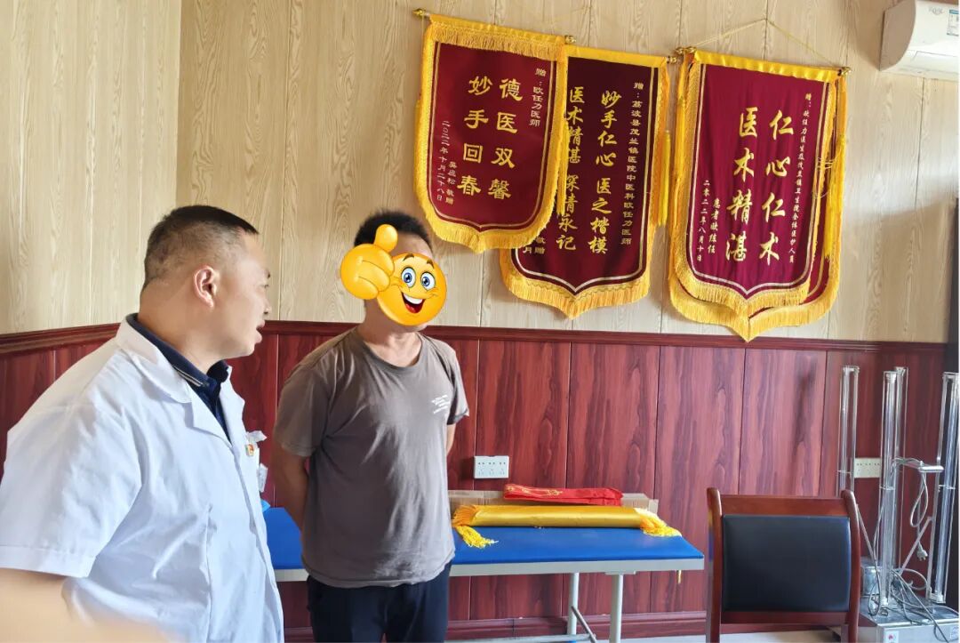 接诊后,欧任力医生带领医护团队,凭借扎实的专业能力为患者制定个性化治疗方案。诊疗过程中,欧医生详细询问病史、耐心解答患者疑问,更以娴熟的小针刀及腰椎间盘突出推拿诊疗手法、神经阻滞治疗、放血等疗法开展治疗;中医科医护则全程给予患者温情关怀,有效缓解了黎先生的疼痛感及焦虑情绪,既展现了“祛病魔”的过硬医术,又传递了“济苍生”的医者温度。经过4天的精心治疗与护理,黎先生病情显著好转,顺利康复。